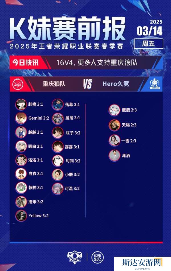 狼队对战Hero :16V4,更多人支持重庆狼队;