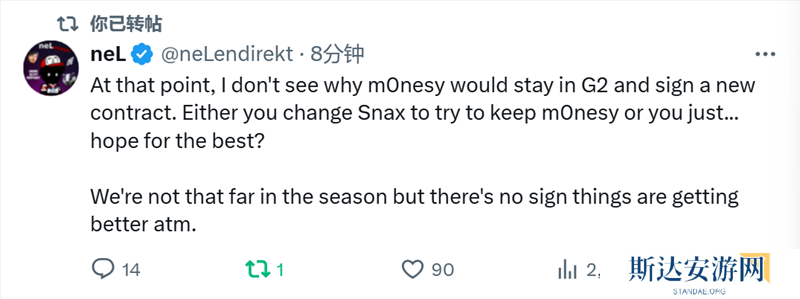 “当时我不明白为什么m0NESY会留在G2并签署新合同。要么你换掉Snax以试图留住m0NESY,要么你就……抱最好的希望?