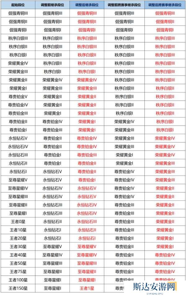 简单的说就是王者20星以上的不变。钻石2到王者10星的继承段位比之前低一个小分段。